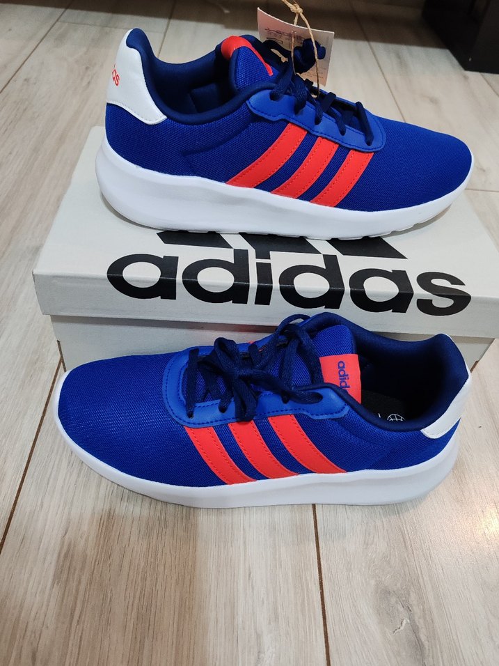 Adidas marka, mavi renkli erkek spor ayakkabısı, renkli baskılı detaylar