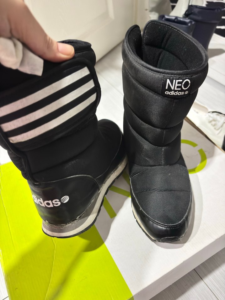 Adidas NEO siyah kadın kar botu botları, kauçuk taban ve cırt cırtlı bantlarla sokak stili ve rahatlığı bir araya getirir.
