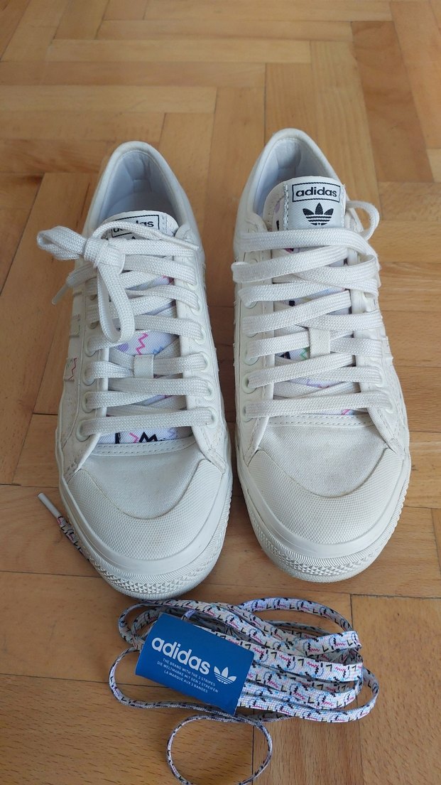 Adidas Nizza Bulut Beyazı Platform Sneaker 41 Numara 2 kere giyildi temiz ve orjinaldir yedek bağcık mevcuttur.