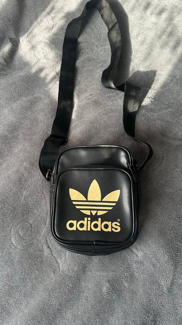Orijinal adidas Originals çapraz çantadır. Fermuar uçları ve iç etiketi orijinaldir. Kullanılmıştır; dış yüzeyde soyulma ve yıpranmalar vardır (fotoğraflarda).