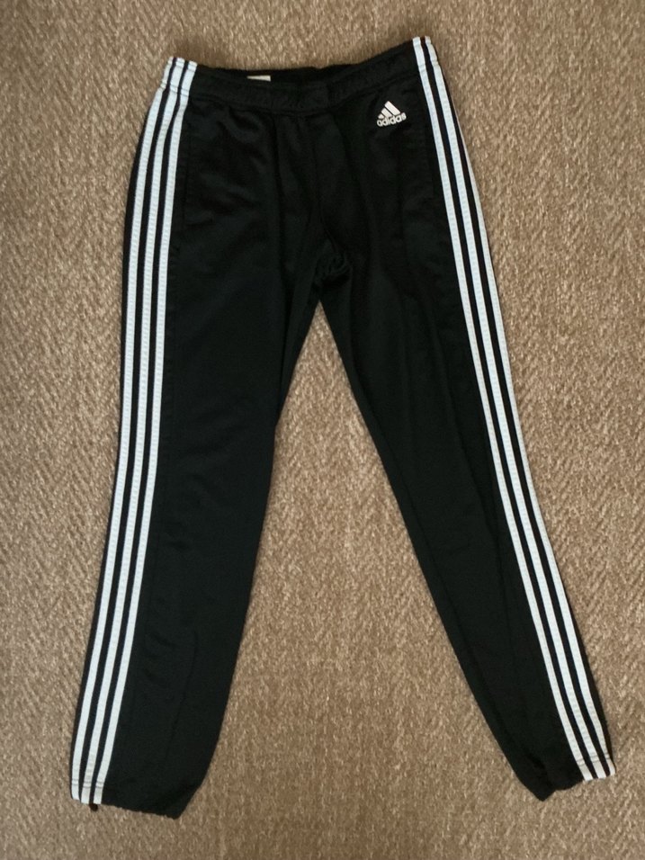 Siyah, dar kesim kadın eşofman altı, elastik bel ve beyaz yan çizgilerle, spor ve rahat bir görünüm sunar.
