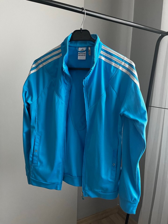 Orijinal Adidas. Çookkk az giyildi. 1-2 kez belki. Yeniden farksız. Parlak mavi renkli, fermuarlı, uzun kollu ve yüksek yakalı bu kadın ceket, spor ve sokak tarzı için uygundur.