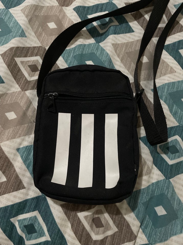 Orjinal adidas siyah beyaz renkte iki ana bölme var ilk ana bölmede iki aralıklı bölme vardır diğeride tek bölmedir.Ürün temizdir yırtıl vesayri yoktur sıfıra yakın