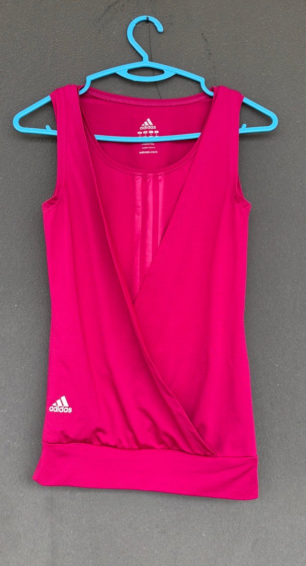 Adidas pembe, drapeli, kolsuz hamile atlet. İnce, sentetik kumaştan, spor ve sokak tarzına uygun. ♀️