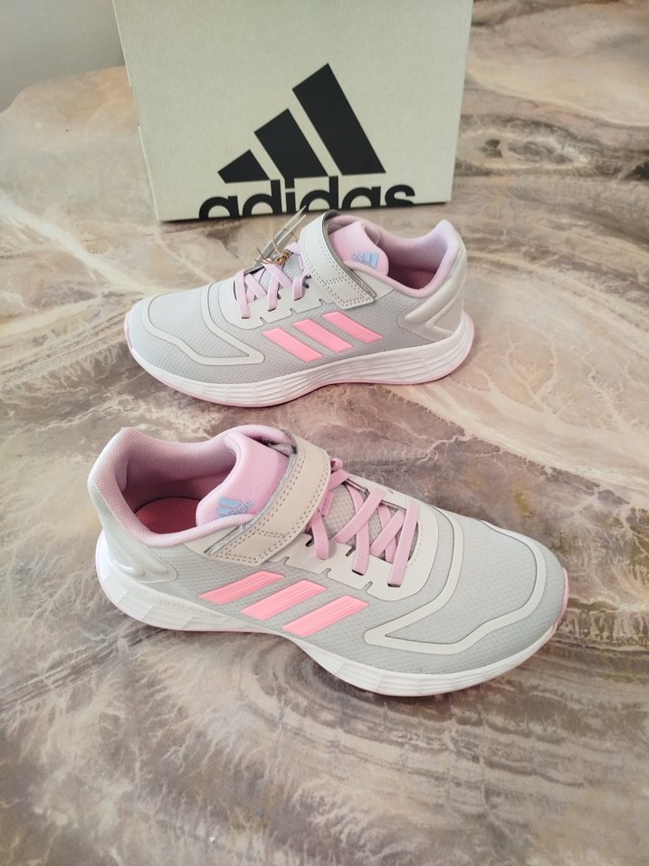 Adidas marka, pembe ve gri renklerde spor ayakkabı 36 numara orijinal sıfır ürün kutusunda