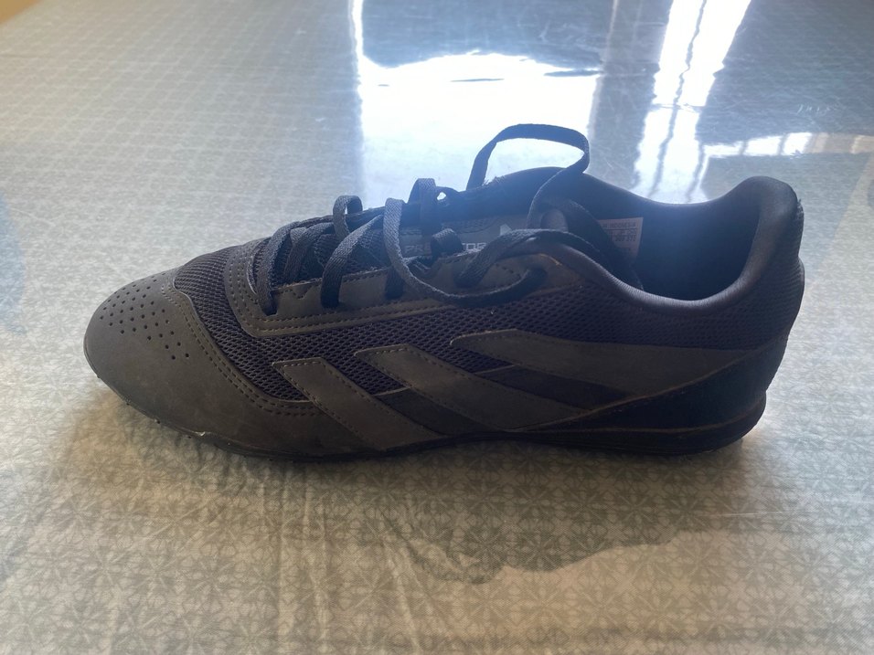 Krampon 1 defa giyildi, küçük geldiği için satışta. Sıfır ayarında. Faturası mevcut ama orjinal kutusu yok. Siyah erkek futbol ayakkabısı, kauçuk tabanlı ve Velcro özelliğine sahip. Spor ve sokak stili için uygun, desensiz ve trend.