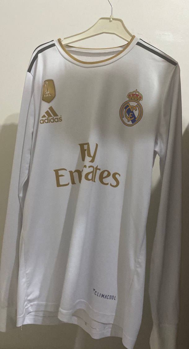 Beyaz uzun kollu, bol kesim ve yuvarlak yakalı forma. Real Madrid arması, Adidas logosu ve 'Fly Emirates' baskısı bulunur. Nefes alabilir sentetik kumaş, Climacool teknolojisi ile. ⚽