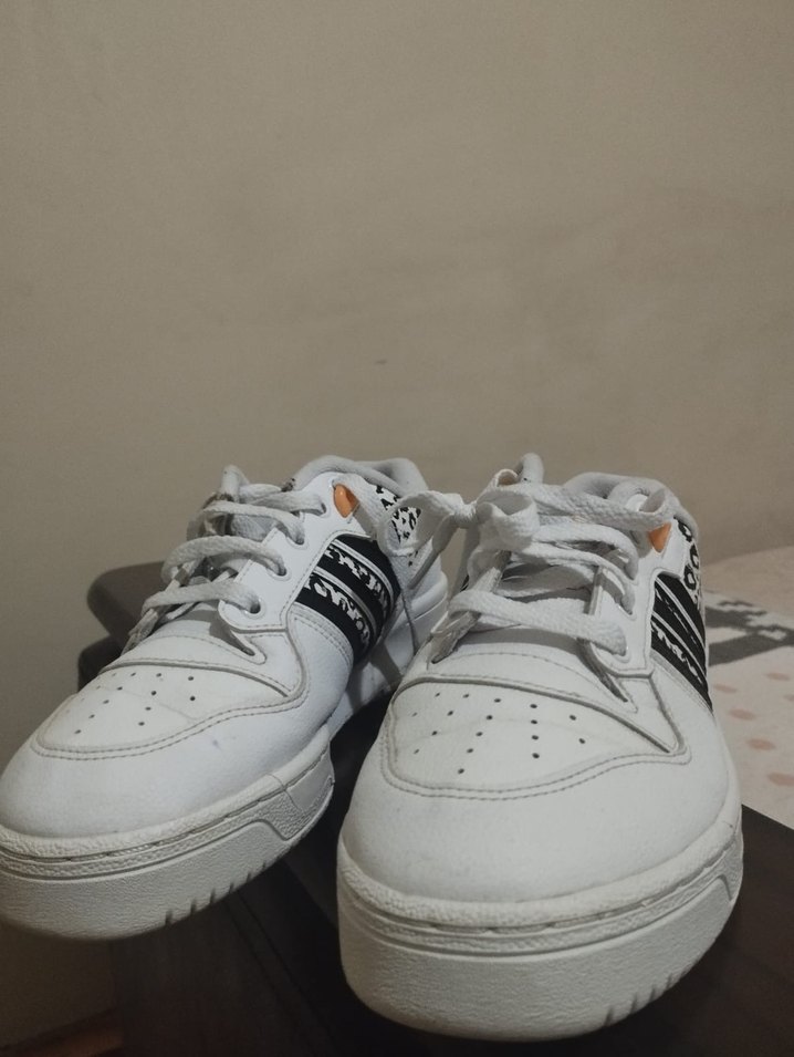 38 numara orjinal kullanılmış adidas kadın ayakkabısı , beyaz bağcıklı , ayakkabının ıc tarafında bır delık olmus fotograflarda gorundugu gıbı , ön kısmıda hafif kırılmış