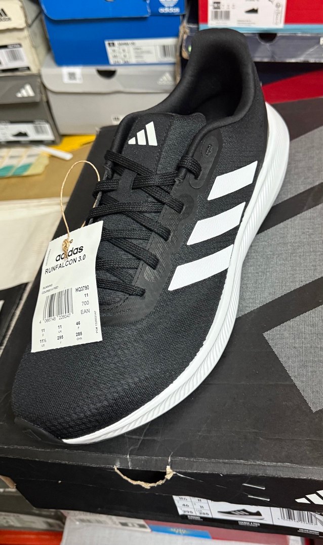Adidas Runfalcon 3.0, siyah 45.5 46 baskılı tasarım, cırt cırtlı ve kauçuk tabanlı, spor ve sokak stili için uygun bir ayakkabıdır. ♂️