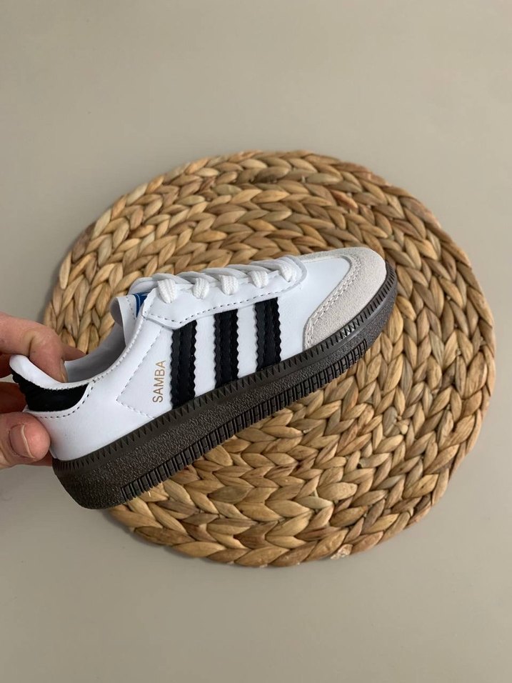 Adidas Samba platform topuklu, cırt cırtlı spor ayakkabı, beyaz ve gri tonlarında, sokak stili için uygundur. 21 numara
