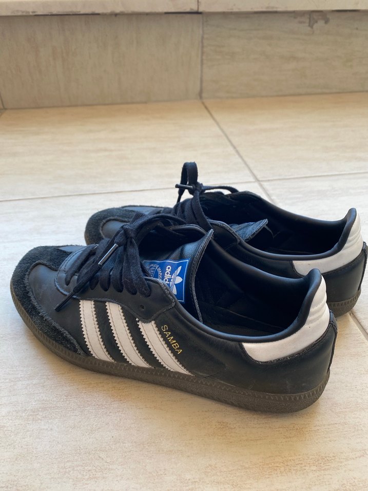 Adidas’ın Samba modeli. 41-1/3 numara. 2023’te almıştım. Numarası küçük geldi. Küçük dediğim 1/3 değil de 2/3 olsaydı rahatlıkla giyerdim. Normalde 41 numara giyiyorum ama Adidas’ın kalıpları bir tık dar oluyor. Diğer ayakkabıları 41-1/3 gayet rahat olurken bu ayakkabı olmadı. Gerçekten çok üzgünüm bir türlü rahat bir şekilde giyemediğim için. Çünkü ayakkabı orijinal deri çok kaliteli bir ayakkabı. Ömürlük. Model olarak da çok güzel bir ayakkabı. Hafif dar geldiği için ayakkabıyı kalıba sokmadım şekli şemaili bozulmasın diye. Ama tabanlıklarını çıkarttırıp daha ince bir deri tabanlık taktırdım. O da çözüm olmadı açıkçası. Dolayısıyla satmaya karar verdim. Bu arada elbette ki satın alındığında orijinal tabanlıkları taktırıp göndereceğim. Şu an fotoğraflarda da görebilirsiniz. Orijinal tabanlıkları takılı değil. Bahsettiğim ince deri tabanlıklar takılı. Bunun dışında ayakkabının herhangi bir sorunu ya da sıkıntısı yok. Ter temiz sapa sağlam duyuyor.