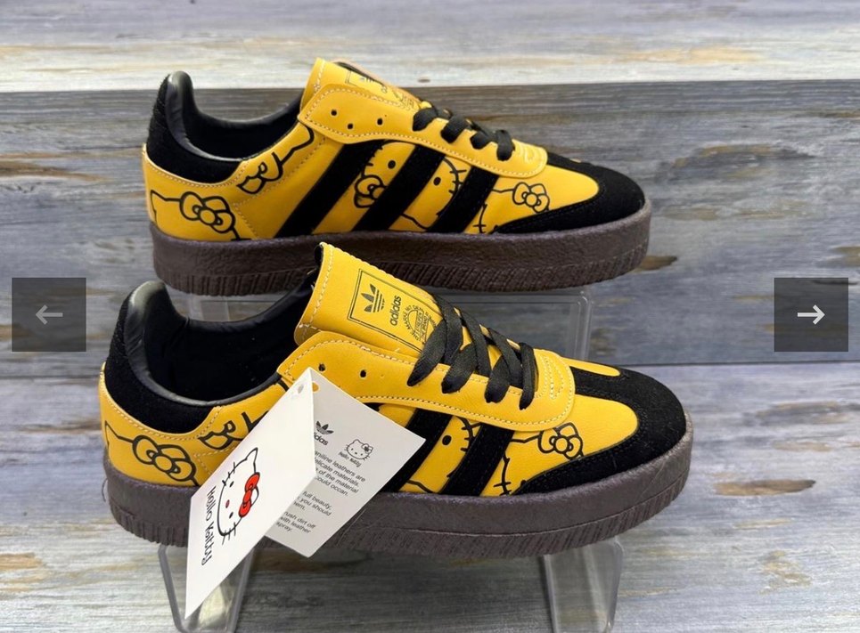 Sarı platform topuklu spor ayakkabı, baskılı Hello Kitty desenli, cırt cırtlı ve kauçuk tabanlı, sokak ve spor tarzına uygun. 36-40 numaraları mevcuttur