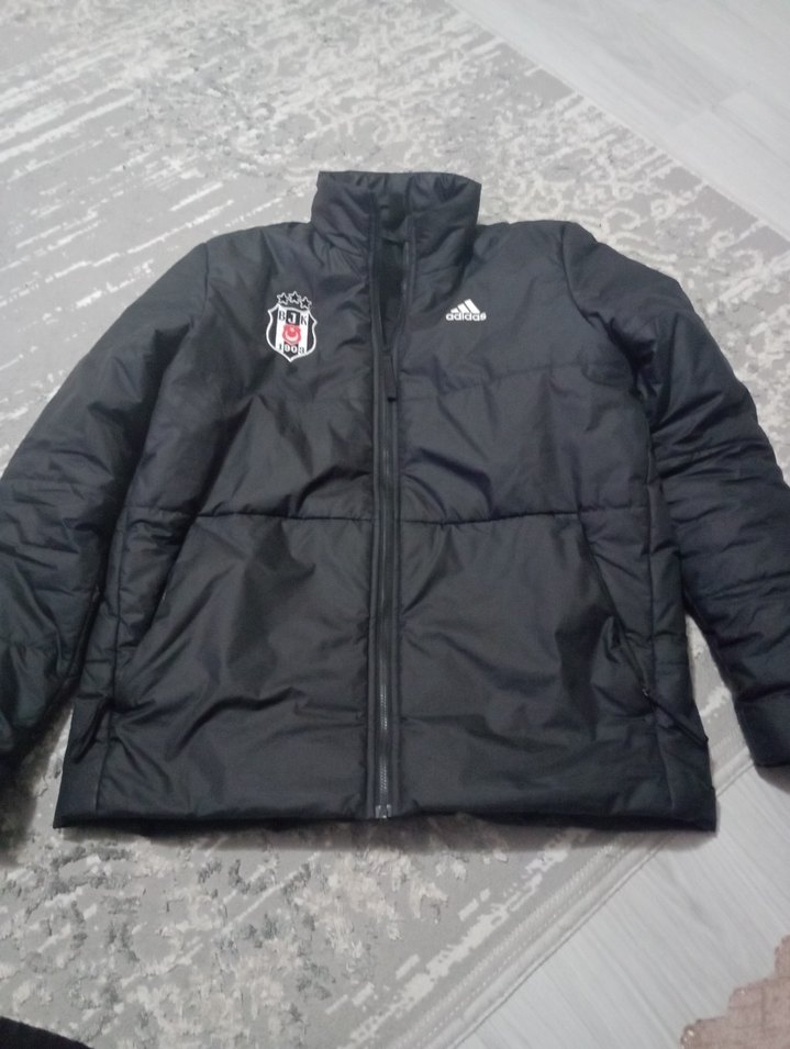 Adidas siyah baskılı fermuarlı erkek mont, fitted kesim, normal boy, uzun kollu ve yuvarlak yakalıdır. Yumuşak ve sıcak kumaştan üretilmiştir, Beşiktaş amblemi ve 18 sayısı baskılıdır.