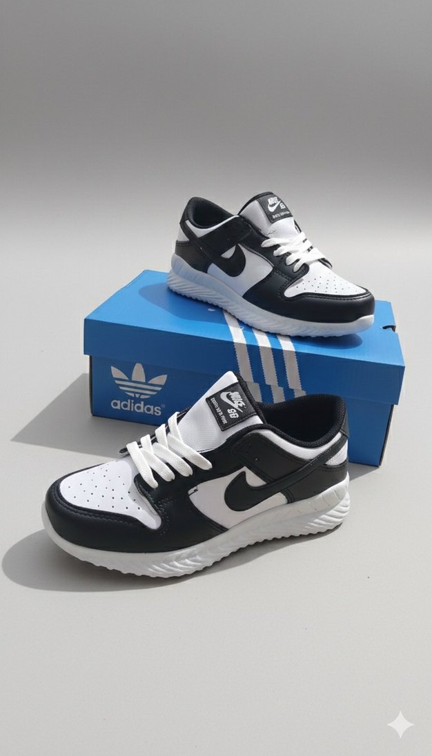 Adidas siyah beyaz renklerde, blok topuklu spor ayakkabısıdır. Kauçuk tabanlı, rahat ve şık tasarımıyla günlük spor ve sokak stiline uygundur.