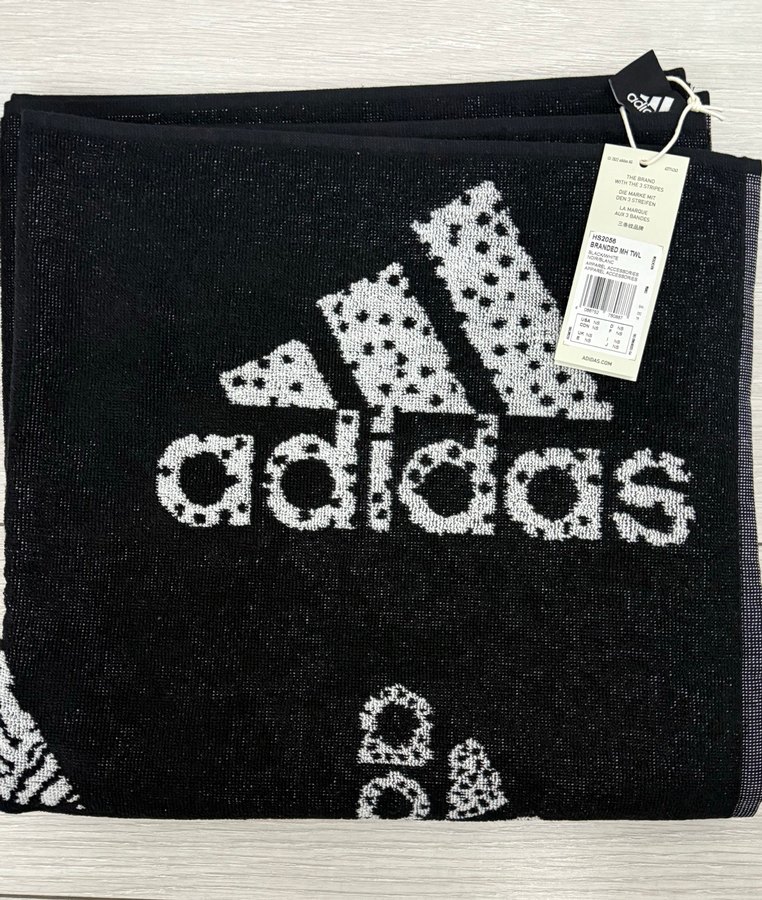 Bu koyu siyah Adidas logosu plaj havlusu
