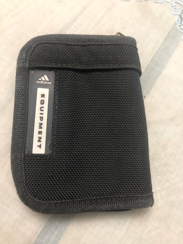 Bu siyah Adidas erkek cüzdanı, üzerinde "EQUIPMENT" yazısı bulunan baskılı tasarıma ve güvenli kapaklı kapanışa sahiptir.