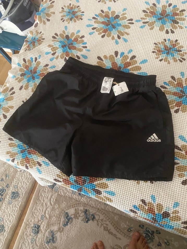 Adidas siyah erkek şort, kısa ve bol kesim. Sentetik kumaştan, Velcro detaylı, spor ve sokak stiline uygun.