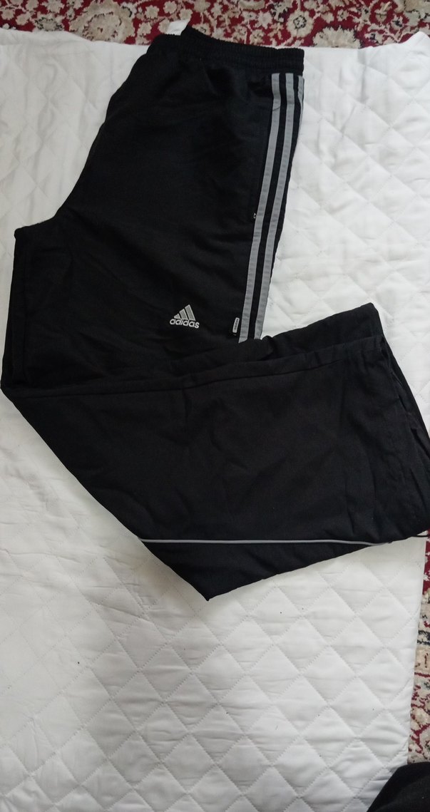 Adidas marka, siyah renkli, fermuarlı cepleri ve yan çizgileri olan, erkek eşofman altı. Spor ve sokak tarzına uygun.