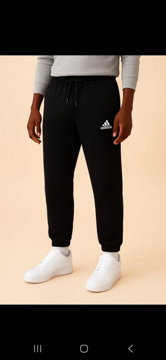 Adidas siyah, rahat kesim ve midi boyda, yumuşak ve sıcak kumaştan erkek eşofman altı. Rahatlık için elastik paçalar ve şık sokak stili ile öne çıkar.