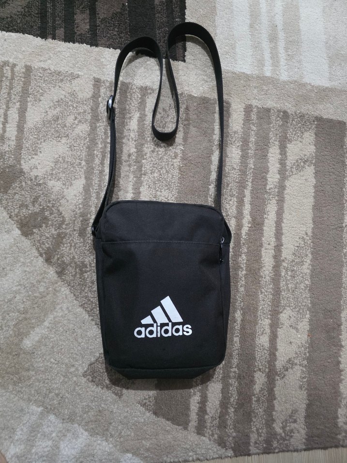 iki büyük gözü vardır kesinlikle orijinaldir boyu 24 cm eni 18 cm derinlik 7 cm kayış uzunluğu tam açıkken 141 cm Ayarlanabilir tokalı kayışı ve baskılı Adidas logosu bulunan siyah erkek omuz çantası, günlük sokak stili için uygundur.