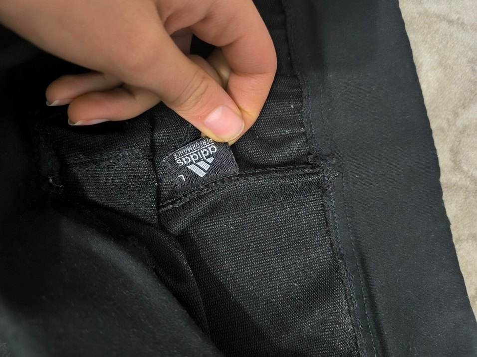 Adidas siyah erkek spor pantolon, sentetik kumaştan, yapışkan bantlı ve dar kesim. Spor aktiviteleri için uygun şık bir tasarım.