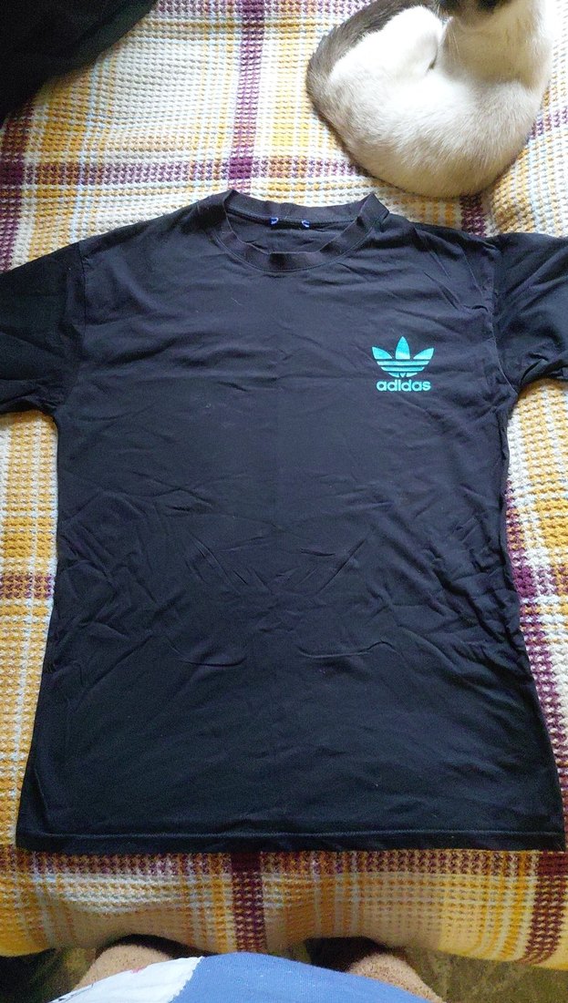 Siyah Adidas erkek tişörtü, yuvarlak yaka ve kısa kolludur. Sentetik kumaştan üretilmiş, baskılı logo içerir. Spor ve gündelik kullanıma uygundur.