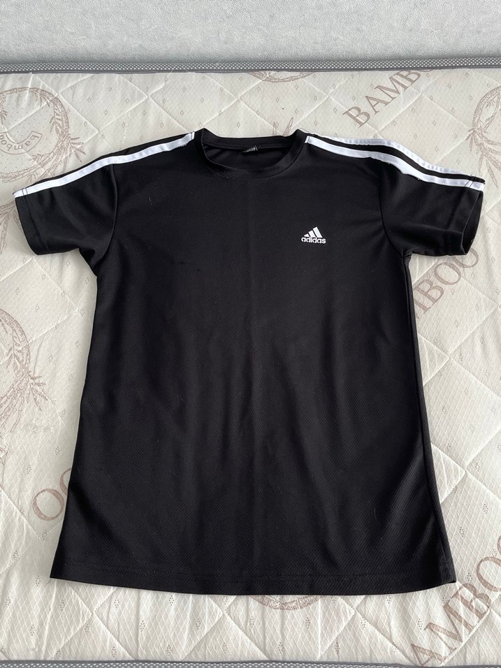 Adidas siyah erkek kısa kollu tişört, bisiklet yaka ve dar kesimlidir. Omuzlarda baskılı şeritler ve göğüste küçük logo bulunur. Sentetik kumaştan, cırt cırt detaylıdır. Spor ve günlük kullanıma uygundur. ♂️