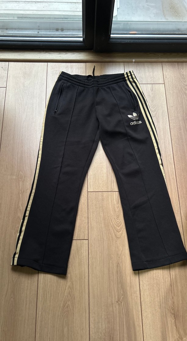 Adidas siyah eşofman altı, bol kesim ve normal boy, sentetik kumaştan, fermuarlı cepler ve yan şeritlerle spor sokak tarzı için uygundur.