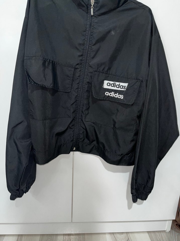 Orjinal adidas değildir. Bu siyah yağmurluk, fermuarlı ön kısım, yüksek yaka ve uzun kolludur. Bol kesimi ve normal boyu ile dış mekan kullanımı için uygundur. Desensiz ve rahat dokulu kumaştan yapılmıştır.