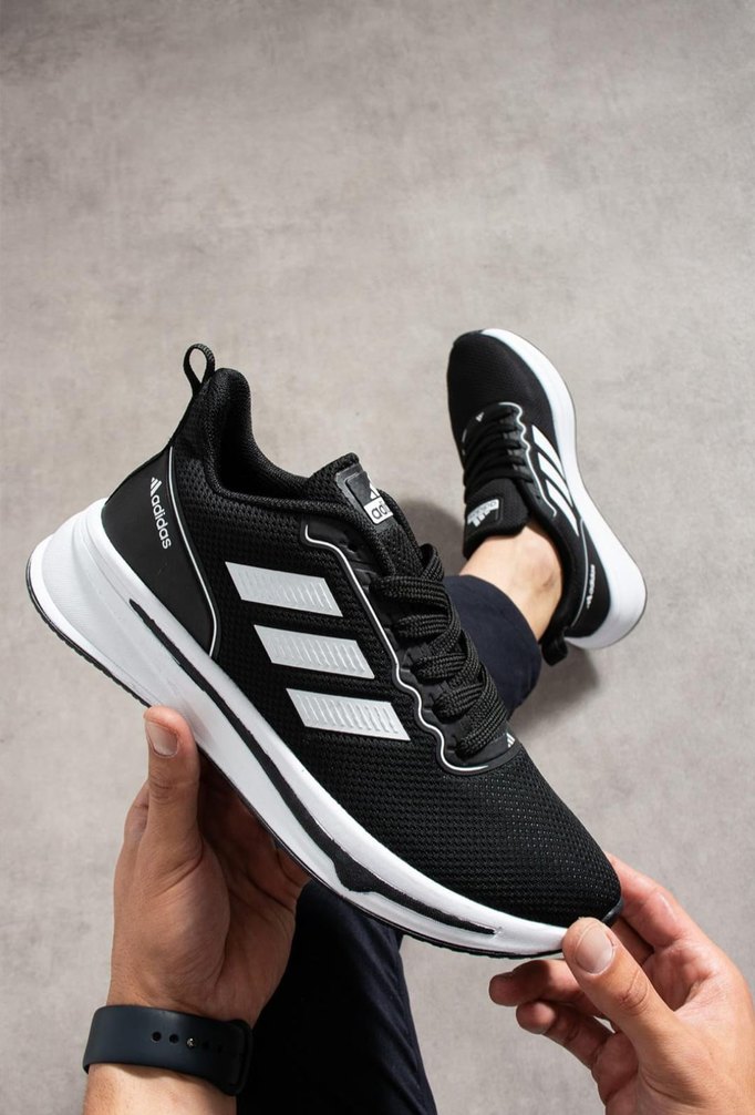 Adidas erkek spor ayakkabısı, siyah ve gri zebra desenli, bağcıklı ve kauçuk tabanlıdır. Spor ve sokak stili için uygundur. ♂️