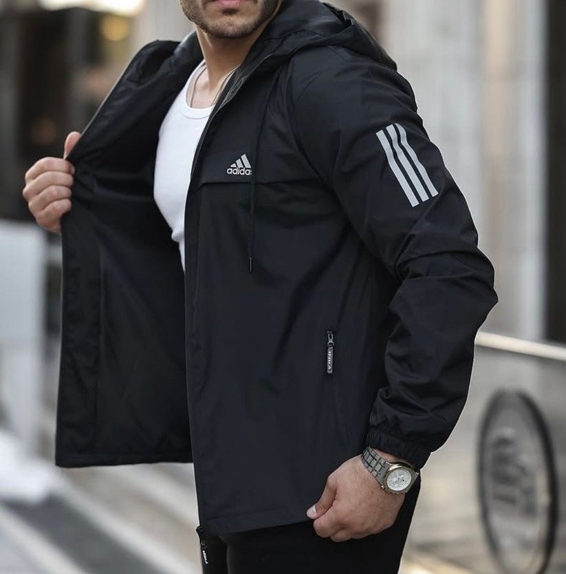 Adidas Siyah Kapüşonlu Erkek Ceket
