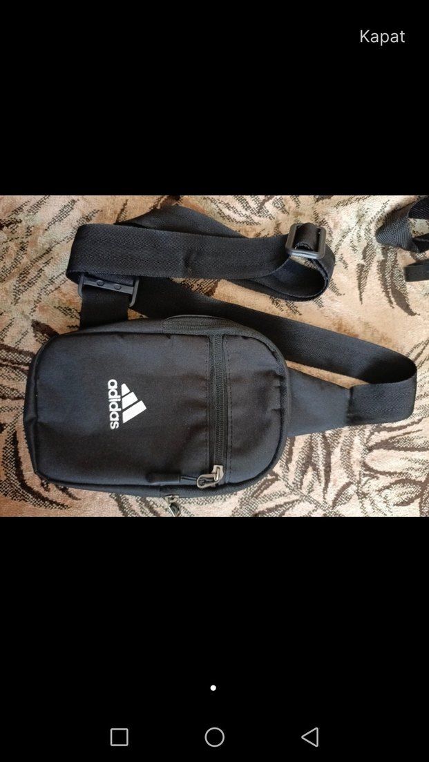 adidas siyah omuz çantası, tokalı kayış ve ön fermuarlı cepli kompakt tasarıma sahip. yeni
