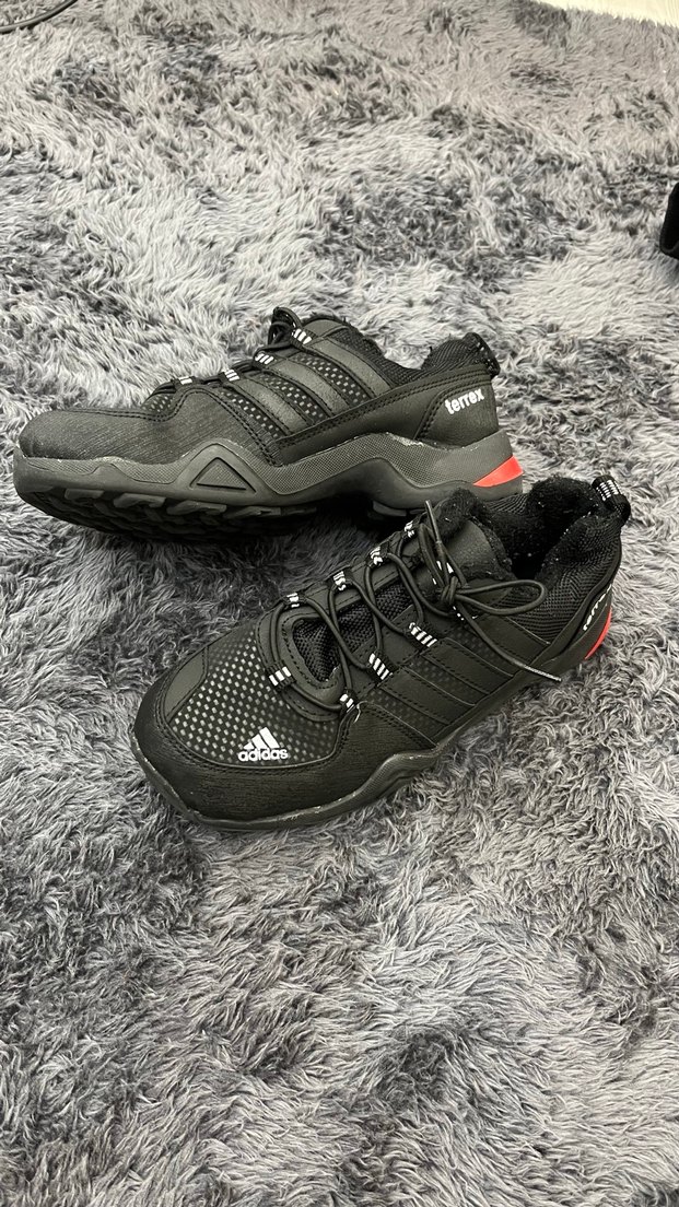 Adidas siyah outdoor sneakers, cırt cırt ve bağcıklı, dayanıklı kauçuk tabanlı. Trendy casual sokak stili için uygun.