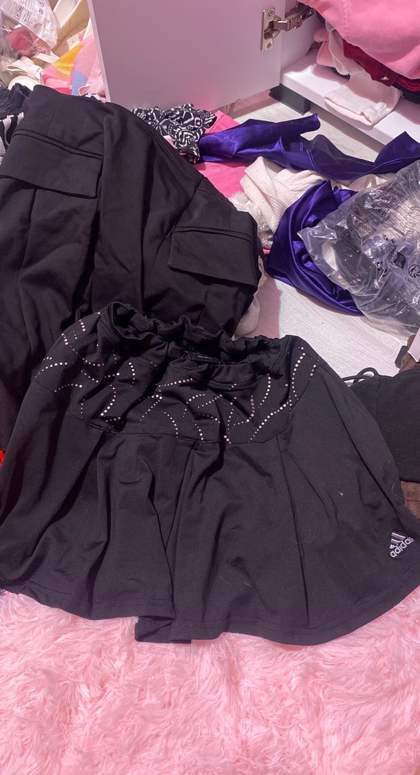 Siyah pilili midi boy, sentetik kumaştan, fit kesim kadın etek. Goth ve athleisure tarzını yansıtır, günlük kullanıma uygun. Orjinal adidas xs beden