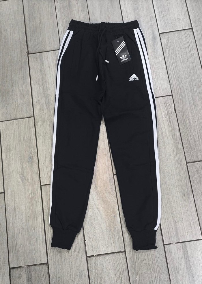 Adidas siyah eşofman altı, sentetik kumaş, rahat kesim ve elastik bel ile, beyaz yan şerit detaylarıyla sportif sokak stili için uygundur. ♂️
