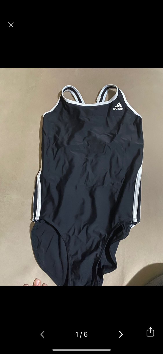 Adidas siyah, beyaz detaylı, kolu olmayan, vücuda oturan kadın mayo. şık tasarım. Yeni gibi