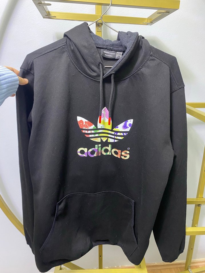 Adidas siyah renkli, bol kesim, uzun kollu ve yuvarlak yakalı sweatshirt. Önünde renkli logo detay bulunur. Günlük kullanıma uygun. Sayılı kez giyildi güzel bir sweat