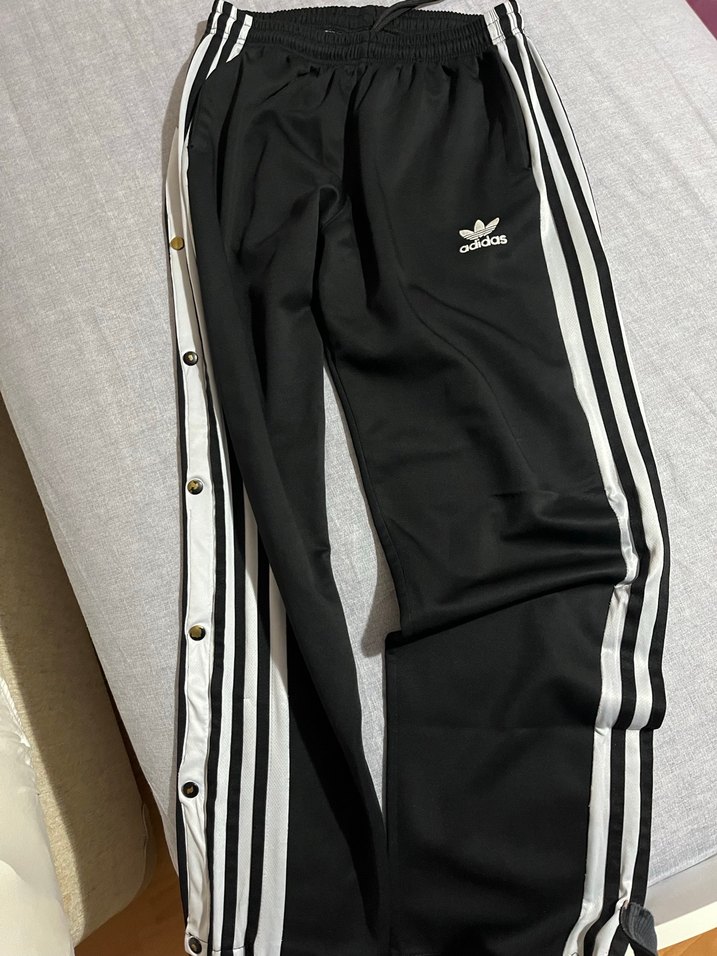 Adidas siyah eşofman, orijinal eşofman altı yanları düğmeli ve çizgili detaylı, bol kesim ve günlük rahatlığı saglar