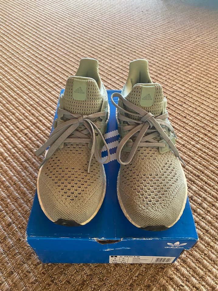 Yeşil renkte, bağcıklı ve düz tabanlı spor ayakkabısı. Nefes alabilen kauçuk malzemeden üretilmiştir, spor ve günlük kullanıma uygundur.