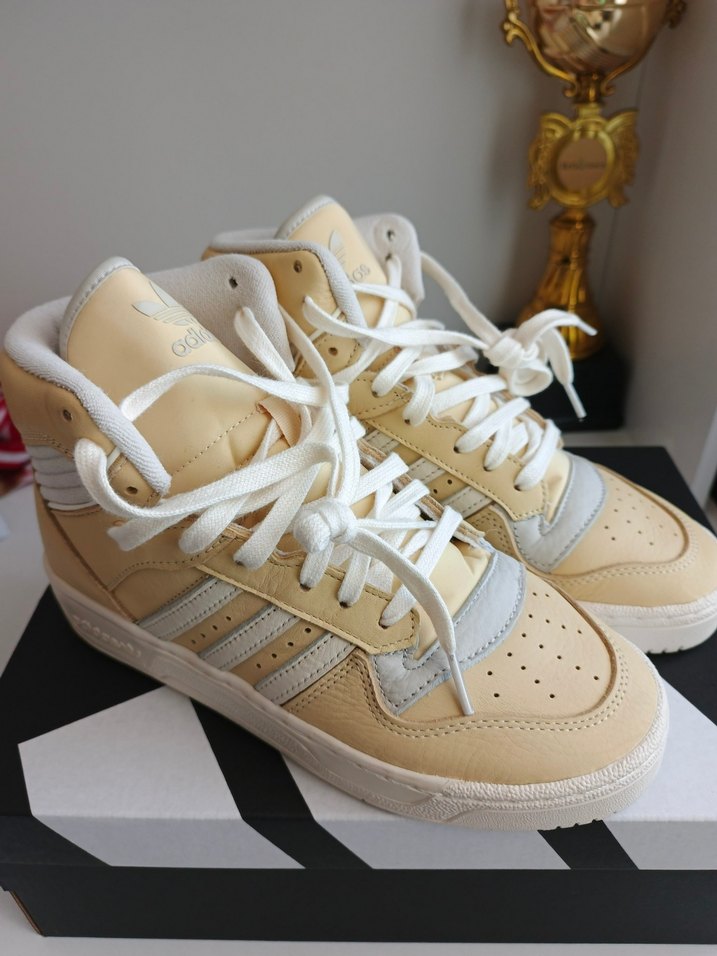 Bej sarı renkte, bağcıklı ve yüksek topuklu kadın spor ayakkabısı. Pastel tonlarda, kauçuk tabanlı ve sokak stili için uygun. yenı etiketli