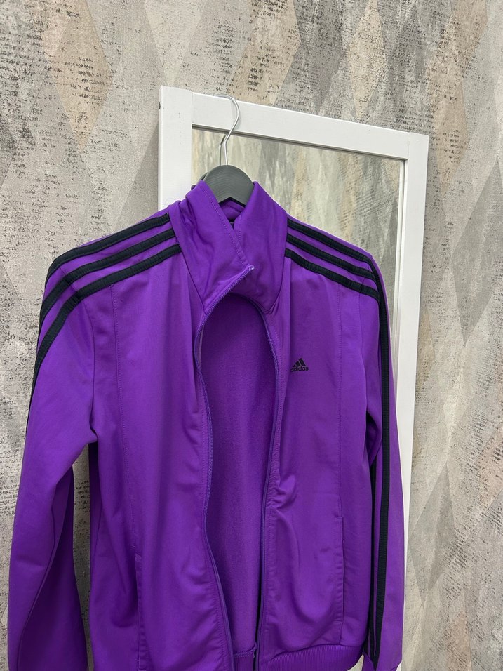 Mor renkli, yüksek yakalı ve uzun kollu kadın spor ceketi. Orjinal ürün ve sıfırdan farksız