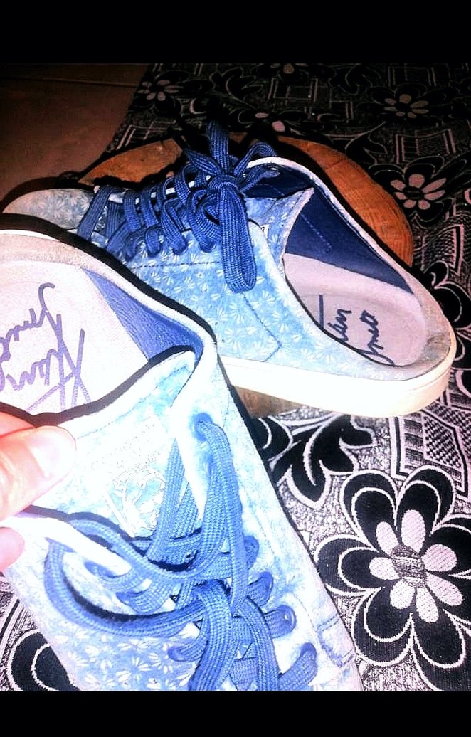Yari terlik, yari ayakkabi seklinde tarz orjinal adidas. Parlak mavi denim malzemeden, baskılı desenli ve bağcıklı unisex spor ayakkabısı. Wedge topuklu, günlük sokak ve athleisure tarzlarına uygun.
