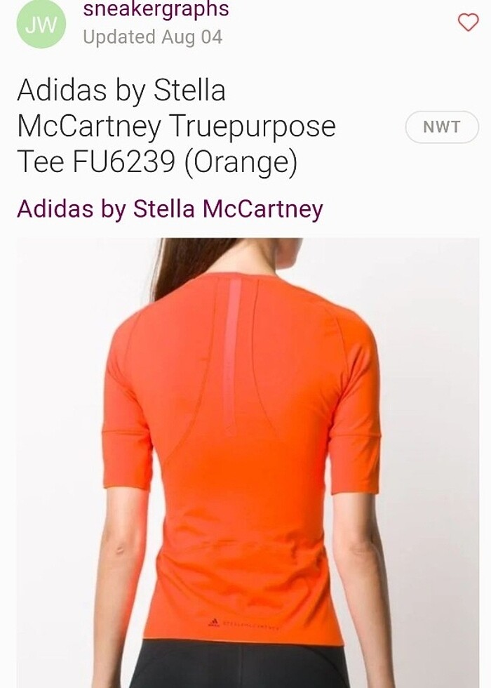 Orjinal adidas kodu ekledim. Ünlü tasarımcı Stella McCartney imzalı Truepurpose TEE Tshirt. En son 72 dolar indirimli fiyattan satılmış bir ürün. koltuk altından koltuk altına 37-47cm arası esniyor. yakadan eteğe boy 57cm. XS beden