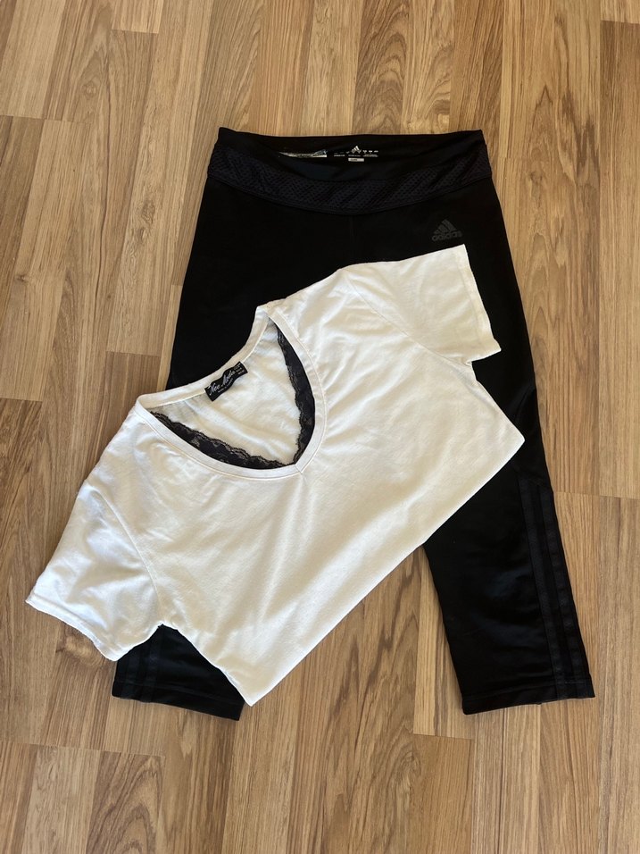 Adidas tayt ve Pamuklu pamuklu v yaka, kısa kollu ve mini uzunlukta, sportif ve rahat sokak stiline uygun beyaz tişört. ♀️