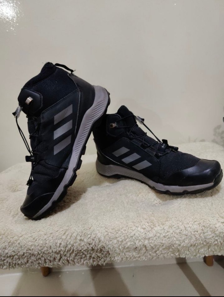 Siyah ve gri renklerde, bağcıklı erkek outdoor spor ayakkabısı. Kauçuk tabanlı, sportif ve sokak stiline uygun tasarım. Görüldüğü gibidir