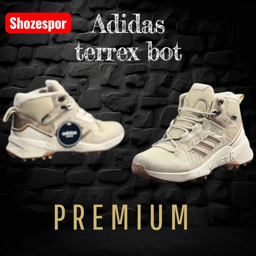 Beyaz ve gri renklerde, baskılı desenli, lastik tabanlı ve bağcıklı Adidas Terrex bot, spor ve sokak tarzı için uygundur. numaraları mevcut