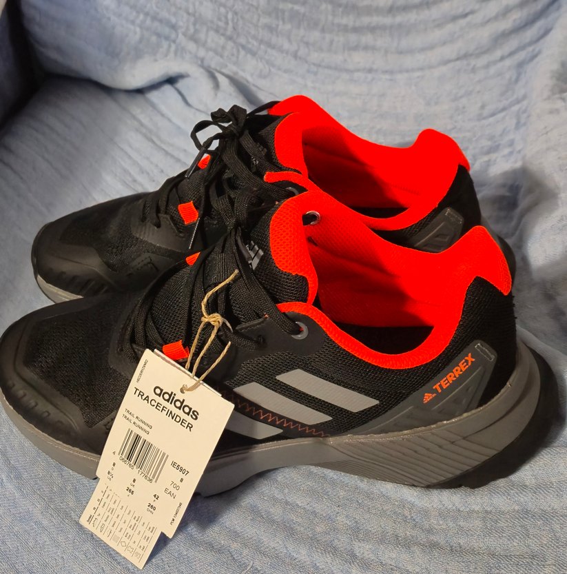 Orijinal Adidas Terrex Soulstride erkek spor ayakkabı,41 1/3 numara, sıfır etiketli, turuncu iç detaylar ve bağcıklı tasarımla, koyu renkli kauçuk tabana sahip. Adidas mağzasında 5499 TL'dir. Son fiyattır.