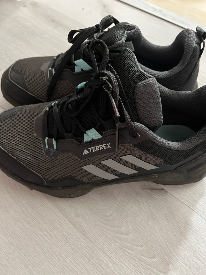 Adidas Terrex erkek spor ayakkabısı, koyu gri baskılı tasarım, kauçuk taban ve cırt cırt detaylarıyla sokak stiline uygun. Yepyeni kızımın ayakları çok çabuk büyüdüğü için sayılı giyildi