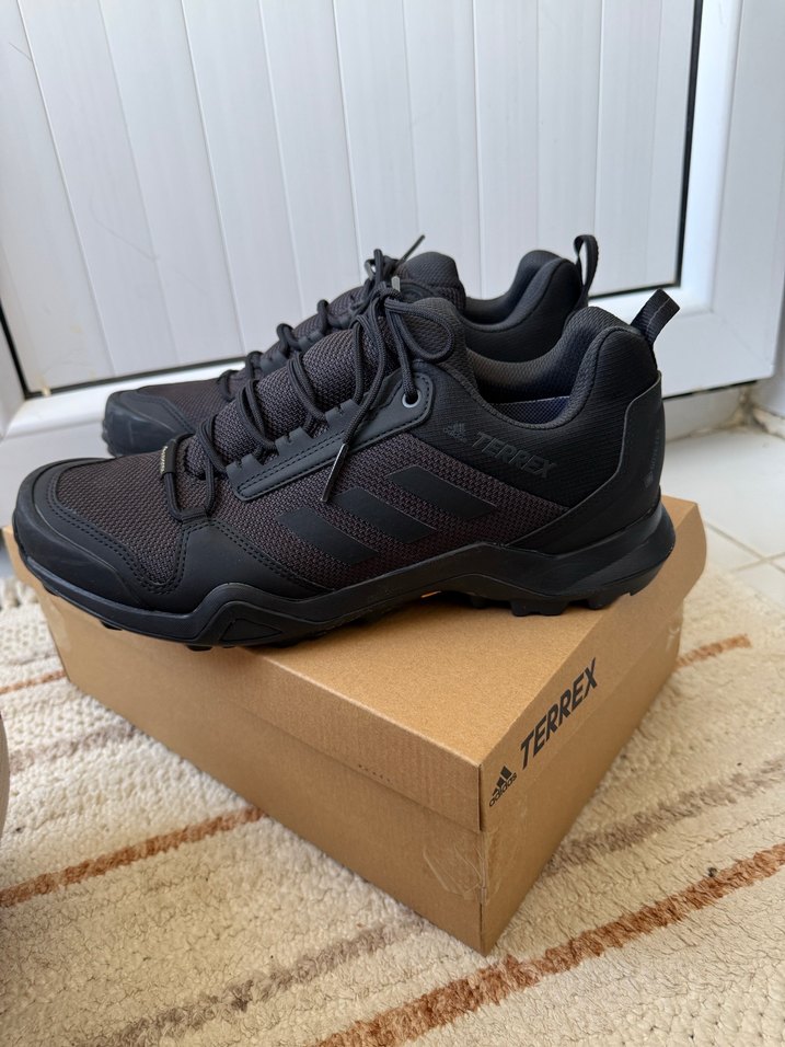 Adidas Terrex erkek outdoor ayakkabısı siyah renkte, bağcıklı ve dayanıklı kauçuk tabanlıdır. Sokak stili ve dış mekan kullanımı için uygundur.