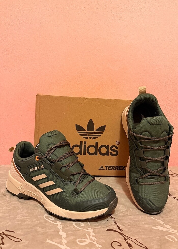 Adidas gore-tex yürüyüş ayakkabısı Su geçirmez özelliğe sahiptir. Tabanı çok rahat kutusu ile gönderim yapıcam. Etiketi üzerinde hiç kullanılmamıştır. Rengi çok güzeldir alt tabanı kaymaz.
